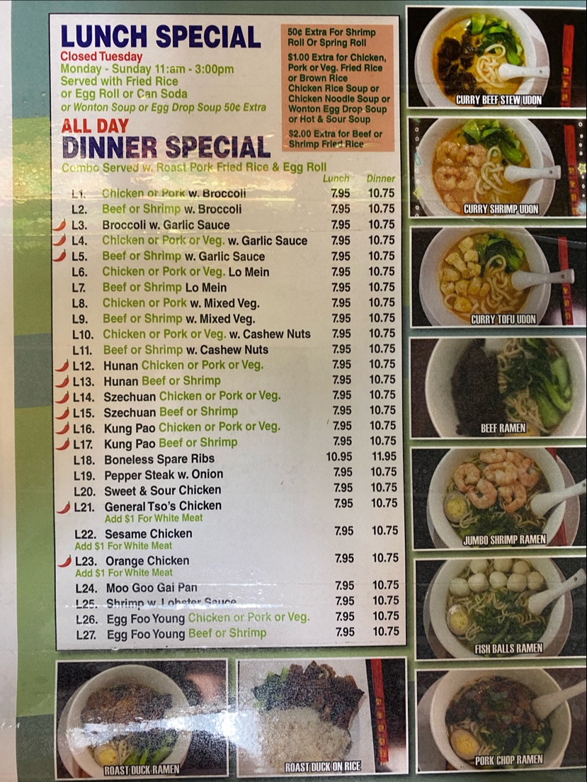 For dinner, indulge in delightful specials like Chicken or Pork with Broccoli or the fragrant Shrimp Lo Mein, all crafted with fresh ingredients and bold flavors. Their lunch specials make for a budget-friendly yet scrumptious option, with dishes like Broccoli with Garlic Sauce starting at just $8.35.